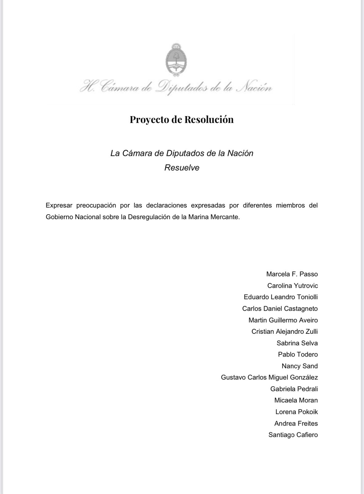 Preocupación de Diputados de Unión por la Patria ante la Desregulación de la Marina Mercante.