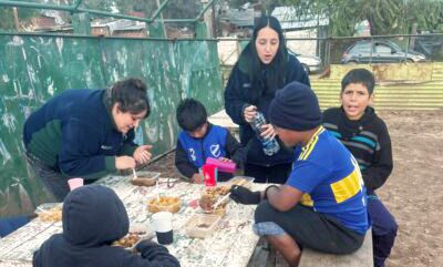 La sede del Club Atlético Defensores Unidos (CADU) se convirtió en un punto de encuentro vital, donde se organizó un espacio base para preparar más de 400 viandas de comida caliente. Los jóvenes voluntarios no solo cocinaron y empaquetaron comida, sino que también se dedicaron a entregarla casa por casa en dos barrios gravemente afectados. Esta acción, que incluyó compartir almuerzo con los vecinos, se convirtió en un momento de verdadera conexión comunitaria.