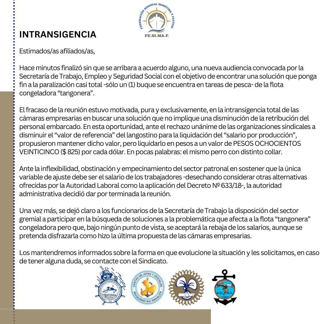Tras retomar el cuarto intermedio pactado el martes, se reanudaron las negociaciones entre el SOMU y los gremios Maritimos que integran la FESIMAF con las cámaras empresarias con el objetivo de aliviar la carga fiscal e impositiva que afecta al sector. Sin embargo, las expectativas de un acuerdo pronto se han desvanecido, ya que los sindicatos acusaron a las cámaras de ser “intransigentes” en su postura.